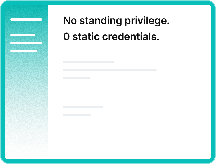 No secrets. No service accounts. No long-term credentials to manage, rotate, or audit.